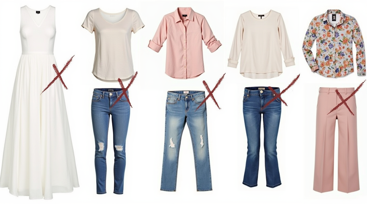 그래서 저는 요즘 '피해야 할 것부터 정하자' 전략 씁니다. 예를 들어, 여성분들은 흰 원피스❌, 과한 시스루❌, 튀는 왕리본❌ 이런 거 먼저 제외해요.