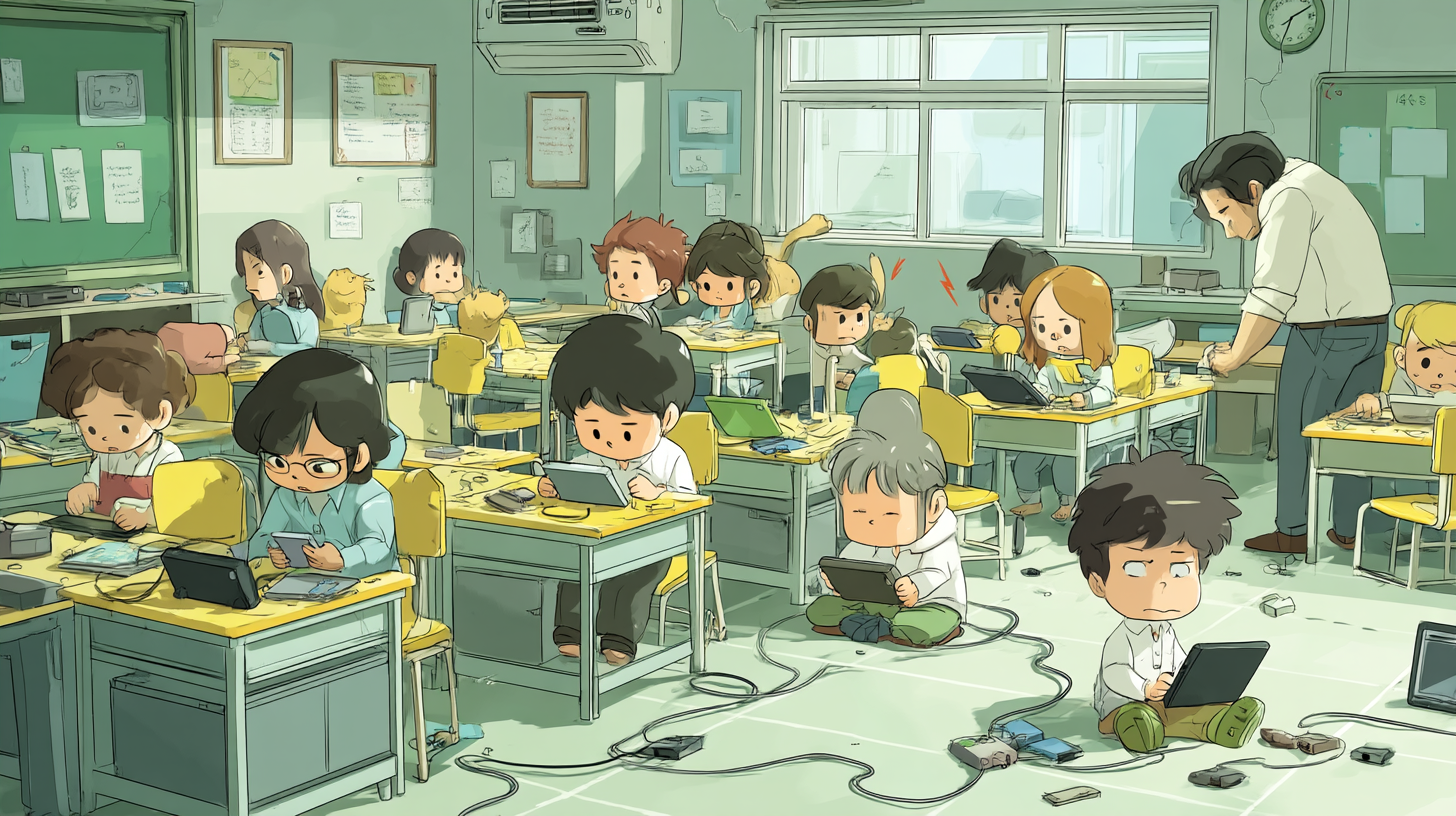 어떤 반에서는 태블릿 충전이 안 돼서 수업을 못 했대요.